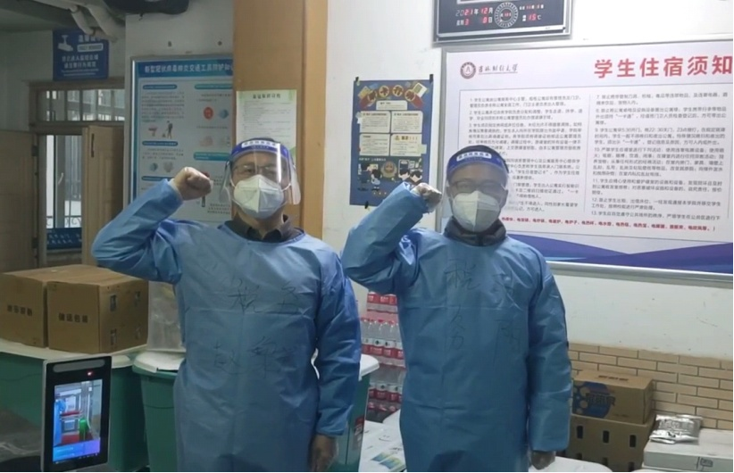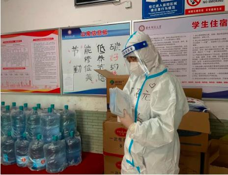 党委副书记赵黎光前期担任住校辅导员工作组第1组组长,与辅导员范阳等三位同志负责学生第1公寓静态管理期间的餐饮配送和核酸检测组织工作。后期工作调整,他与辅导员范阳入住学生第13公寓开展住寝工作,负责学生物资、餐饮配送、核酸检测组织和日常管理等工作。组建了党小组带领下的“青年团员‘知行’突击队”,并分成物流配送小队、核酸检测小队、理论学习小队,通过党建带团建,更好地将13公寓青年团员凝聚在党组织周围,形成了线上开展理论学习,线下做好志愿者实践的工作氛围。