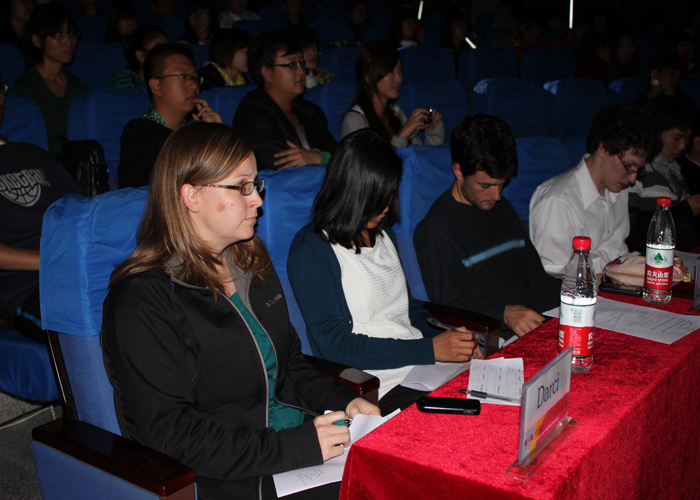 10月8日晚上六点半,我院第八届“税英杯”新生英语口语大赛在教学楼1101报告厅举行。我院团委书记宋立东老师,团委武超老师,我校外教老师Darci、Fatima、Daniel、Jack出席了本次比赛。同时,08级学生会主席师延龙,08级学习部部长金炯佚、王晓曦、吴麦吉以及全体大一新生也参加了活动。