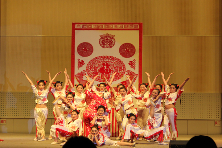 在开场后,我院排演的舞蹈《剪纸姑娘》舞蹈惊艳亮相。她们身着红白相间的传统服饰,随着欢快的音乐不停地变换动作,用灵动的舞姿诠释中国民俗文化中的剪纸艺术。演员们表情生动,动作整齐,一次又一次地演绎高难动作,把完美的舞蹈和丰富的剧情巧妙地结合起来,使得整场舞蹈高潮不断,博得了台下领导及观众热烈的掌声,引起了良好的反响。最后,我院的舞蹈节目获得了本届校园舞蹈大赛民族舞类的三等奖。