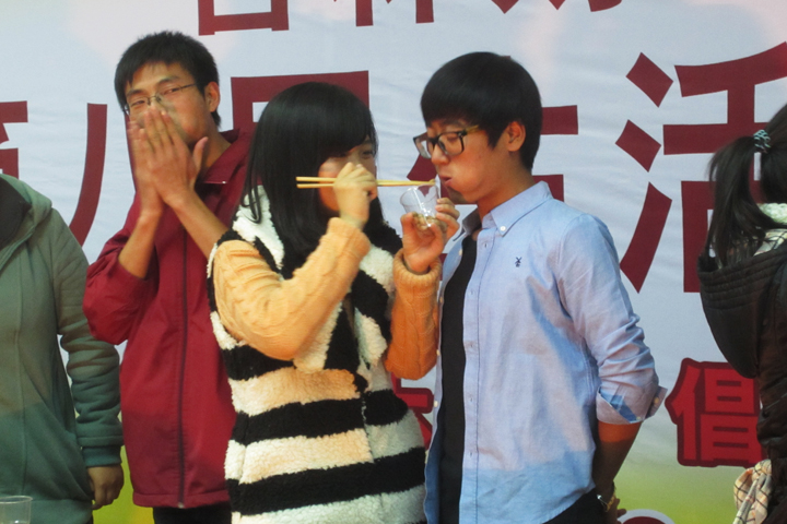 活动首先进行了令选手羞涩却让观众为之欢呼的“烛光晚餐”游戏,每班男女各一名选手共同喝下准备好的粥,选手们窘态百出的样子令全场观众忍俊不禁;接着,便是考验同学间默契的游戏——“老奶奶花生豆”,这个游戏让同学们着实体验了一把“家庭的温馨”。一系列的游戏后,来自税务班的同学们为大家送上了以“回味大学之初”为主题的校园情景剧,把同学们带回了刚刚踏入大学的那段时光。最后,“传气球”游戏将本次活动推向了高潮,活动在一片笑声中结束。