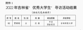 304永利集团税收学专业税收1804班贾婧瑶同学荣获2022年吉林省“优秀大学生”荣誉称号。