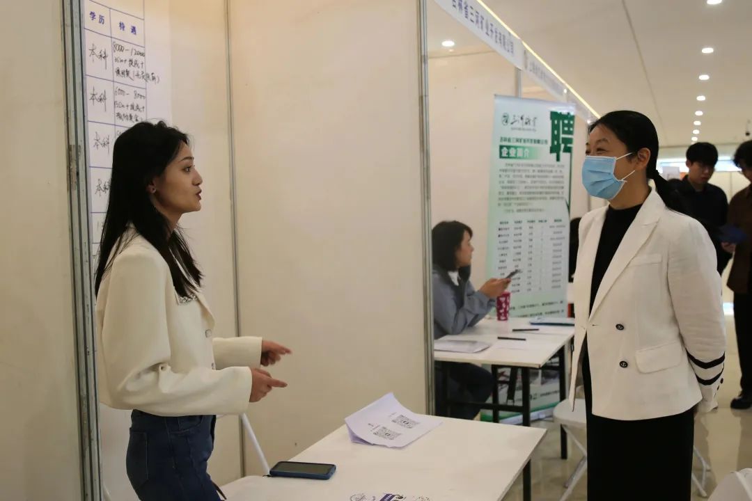 双选会开展过程中,参会毕业生积极同企业交流沟通,投递简历,与用人单位交流了解用人标准,自己与岗位的匹配程度,企业招聘人员现场指导优化了简历,并在职业规划上给予了宝贵的建议,同学们对自己的未来发展也有了更清晰的认知和信心。