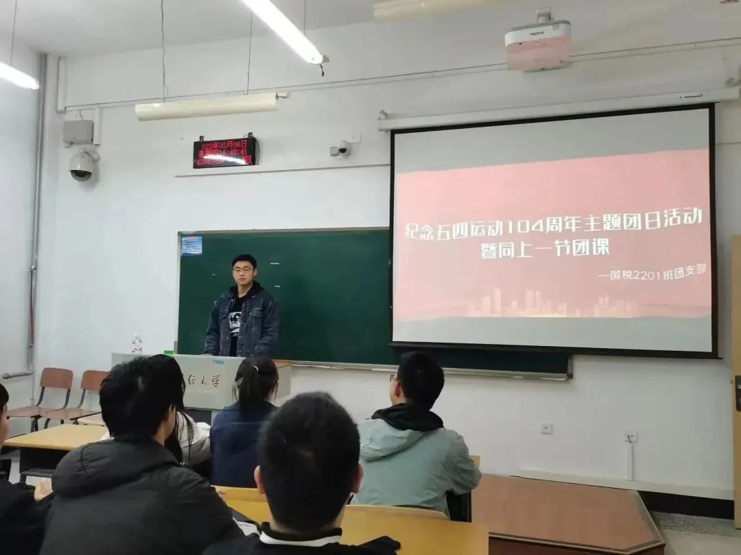 为了学习贯彻五四爱国主义精神,税收拔尖创新班团支部举办了主题为“纪念五四运动104周年”的团日活动暨同上一节团课。本次主题团日活动旨在延续红色基因,培养新时代的青年人才,团结引领广大青年传承五四精神。通过本次活动同学们进一步坚定了理想信念,巩固了初心使命,表达了要成为“红色精神”的忠诚守护者和“五四精神”的坚定传承者,为推动新时代的发展贡献他们的青春力量和智慧的决心。同学们的这份决心充分体现了年轻一代的责任感和担当精神,值得肯定和鼓励。