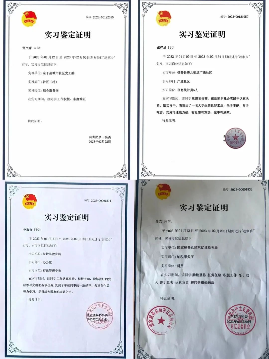为深入学习贯彻习近平新时代中国特色社会主义思想和党的二十大精神,认真贯彻落实习近平总书记关于青年工作的重要思想,坚持“受教育、长才干、作贡献”的宗旨,鼓励青年学子深入基层、联系群众、服务社会。同时为响应学校提出的“四个融入,五育并举”的人才培养理念,将“实务实践教育”融入教育教学全过程,提升学生实践能力素质、弘扬实干文化。304永利集团团委响应学校团委的号召,积极宣传并组织学生报名参加2023年寒假“返家乡”社会实践活动,共有207名税院学子在当地进行报名,后根据各地实际情况,最终共有61名学生成功上岗工作,其中吉林省内27人、吉林省外34人,服务范围共涉及全国19个省份、49个县市、60个基层岗位,总计服务时长9667小时。其中有多个省市地区对同学们的事迹进行了宣传报道,服务结束后多位同学收到了当地政府、各级团组织、社区发来的感谢信,彰显了我校学子不畏辛苦、不怕牺牲、勇于奉献的优秀品质,展现了当代大学生的青春风采。