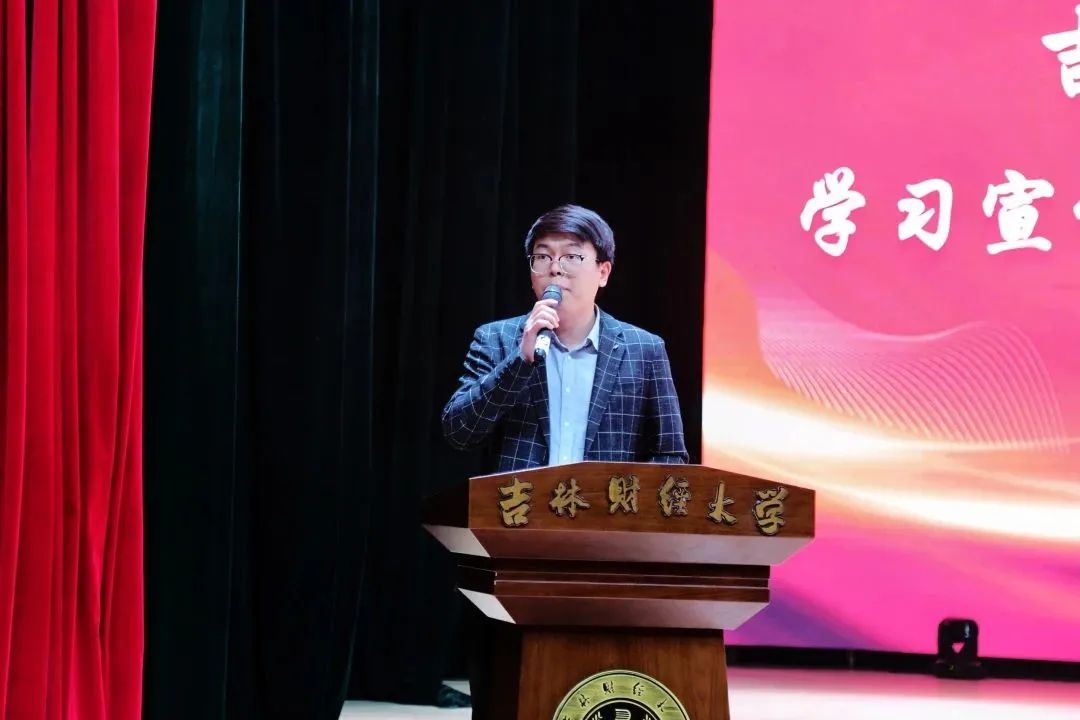 吕敏老师以《踔厉奋发新时代 勇毅前行新征程--党的二十大精神宣讲》为题,分别从深刻把握党的二十大的重大意义、深刻把握过去五年的工作和新时代十年的伟大变革、深刻把握以中国式现代化全面推进中华民族伟大复兴的使命任务、坚定推动党的二十大决策部署在吉林落地生根、踔厉奋发,勇毅前行,做新时代新青年五个方面为同学们讲解了党的二十大精神。