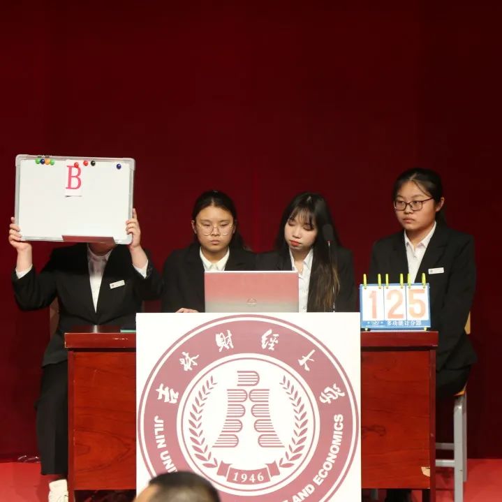 第一环节“初窥门径”,本环节题目包括选择、填空两种题型,主持人念完题目后团队成员商量作答,有30秒时间确定最终答案,各队同时亮题板。选手们冷静分析、沉着作答,充分展现出扎实的理论功底。