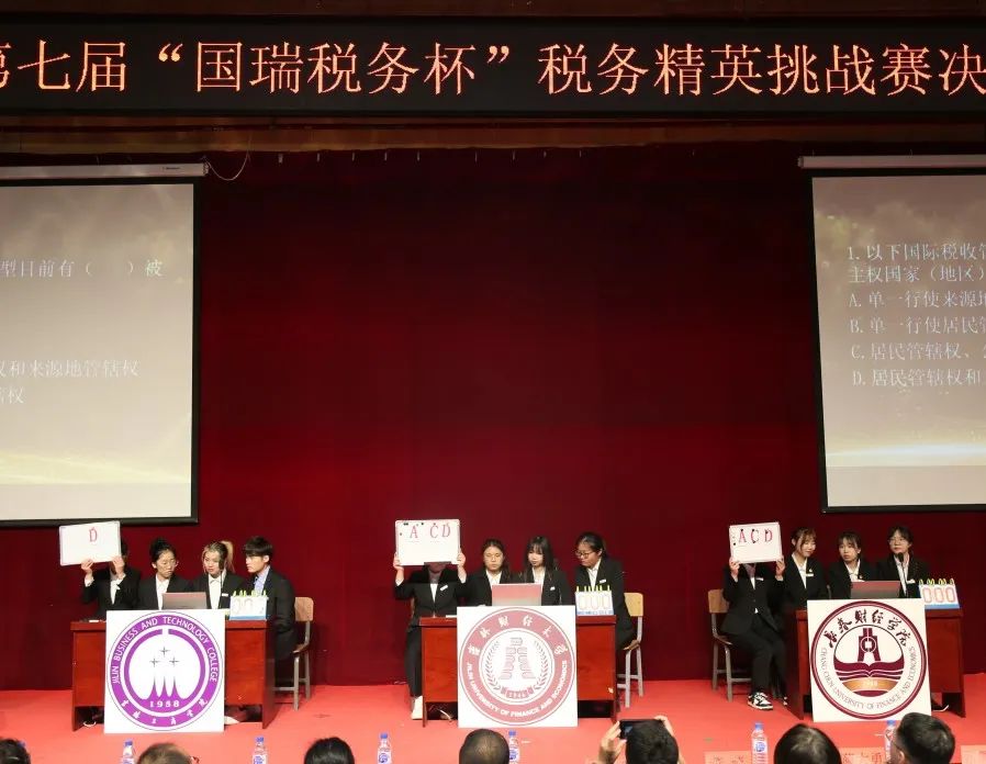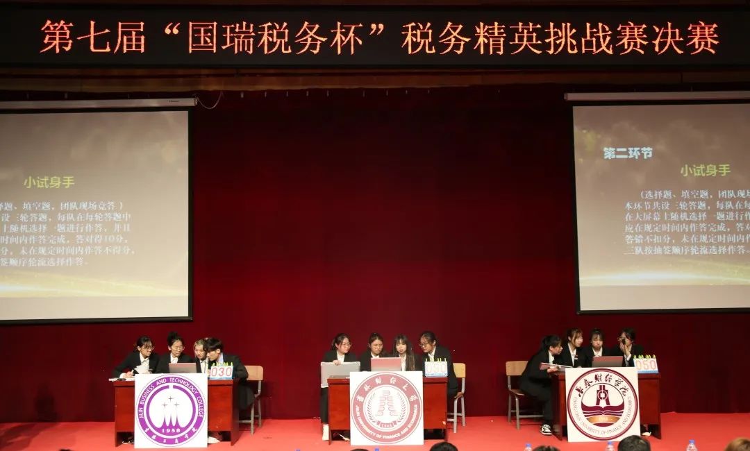 2023年是全面贯彻落实党的二十大精神的开局之年,是全面建设社会主义现代化国家新征程的起步之年。值此万象更新之际,推进高等教育改革以及培育和践行“中国税务精神”对大学生的文化生活越来越重要。304永利集团紧扣第32个全国税收宣传月“税惠千万家,共建现代化”的主题,本着交流学术,展现风采的宗旨,继承严谨求实,学以致用的风气,联合长春财经学院和吉林工商学院共同举办第七届“国瑞税务杯”税务精英挑战赛。经过初赛复赛的激烈竞争,各校选手们脱颖而出,组成三支优秀的竞赛队伍,于5月24日18:00在304永利集团图书馆报告厅展开了最后的较量!