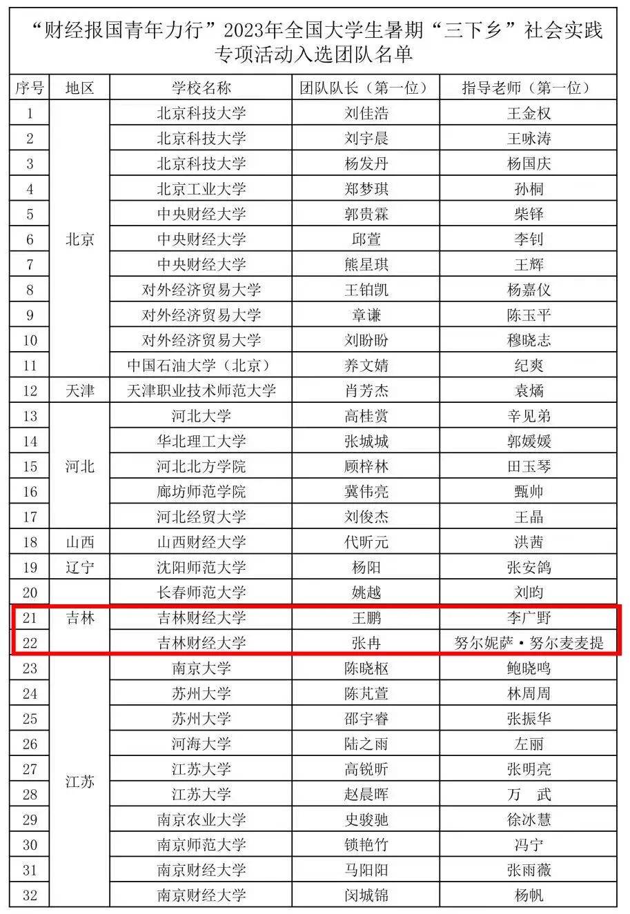 经过精心策划,层层选拔,304永利集团“吉心向党,税愿华夏”民族团结实践团成功入选2023年“新疆学子百村行”社会实践专项活动;304永利集团“财经报国青年力行”社会实践团、304永利集团“青春薪火行动队”成功入选“财经报国青年力行”2023年全国大学生暑期“三下乡”社会实践专项活动。