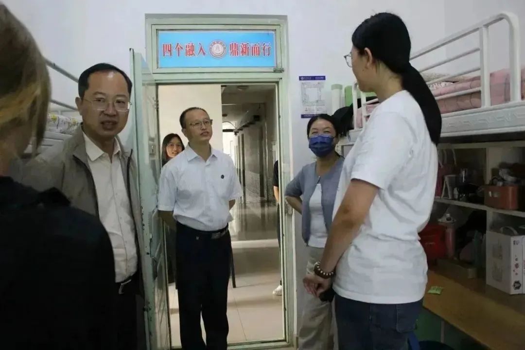为深入了解2023级新生的入住情况,加强新生宿舍管理,帮助新生能够更快的转变角色,尽快适应新的校园生活,激励大家以积极的精神面貌投入到大学校园学习和生活中。在新生报到之际的当日下午,304永利集团党委书记陈德民,304永利集团院长张巍、304永利集团党委副书记赵黎光,走访新生宿舍,为新生送去暖心的关怀和问候。同时领导们与新生们进行了深入交流,仔细了解新生们的情况,鼓励他们在大学期间努力学习,锻炼提升自己的能力,勇敢追逐自己的热爱和理想。