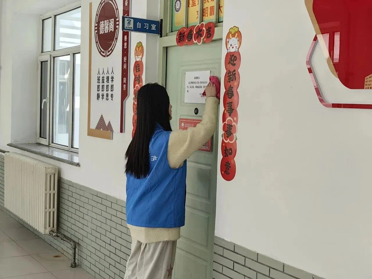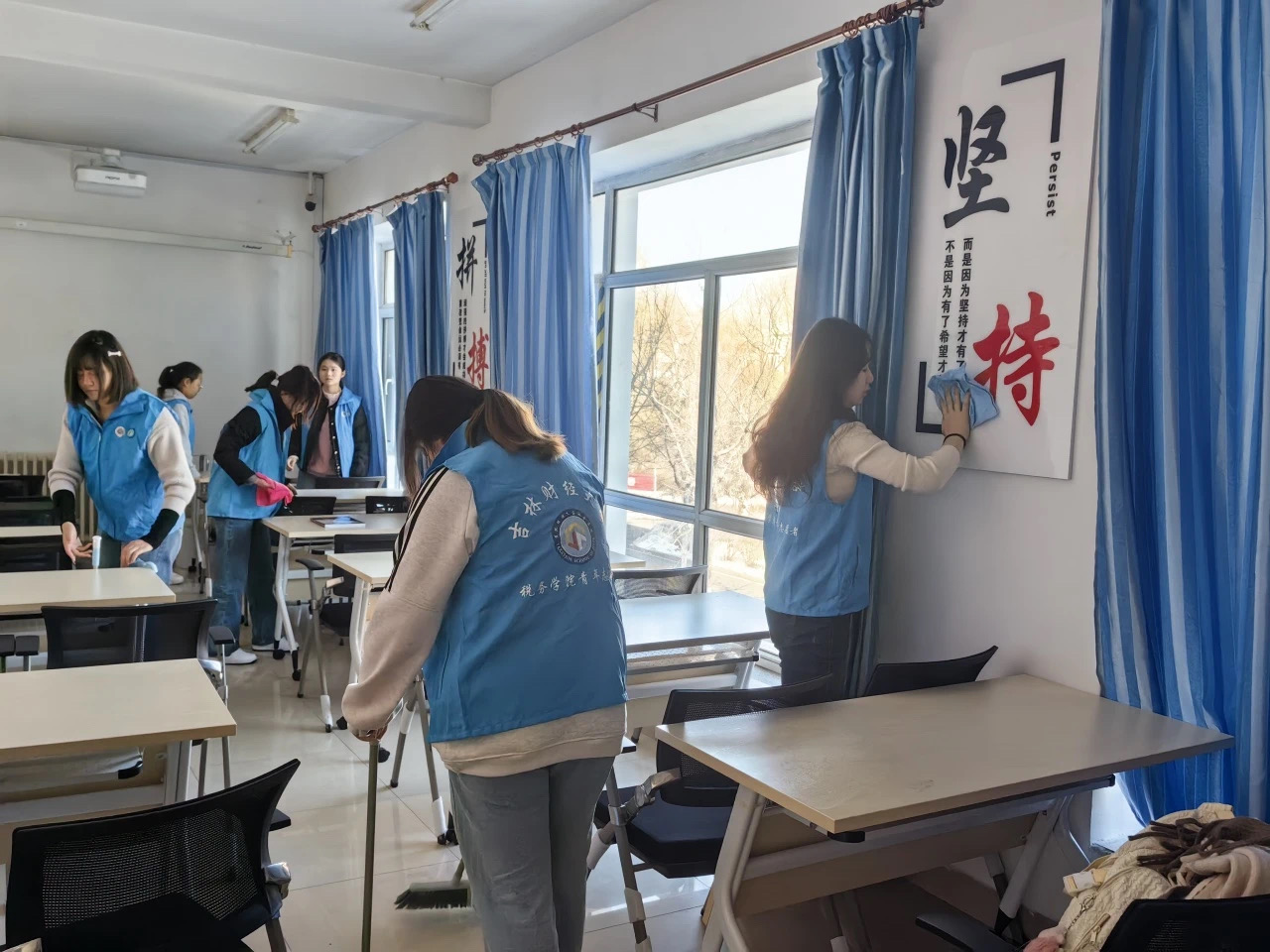 开学大扫除,“净”待新学期。新春伊始,万象更新。冬去春来,伴随着春天的脚步,迎来了2024的新学期。在304永利集团团委老师的号召下,石榴籽志愿者协会的同学们积极参与其中,大家分工明确、协作默契,快速而高效地投入到打扫过程当中,充分发挥了不怕脏、不怕累的精神,为守护和清朗校园贡献自己的一份力量。在同学们的辛苦劳动下,德真社区活动室的环境变得整齐有序,呈现出整洁亮丽、活泼清新的新气象。同学们也在劳动中进一步传承和发扬了奉献精神,在亲身实践中,让同学们对志愿服务精神有了新的体会和认识。