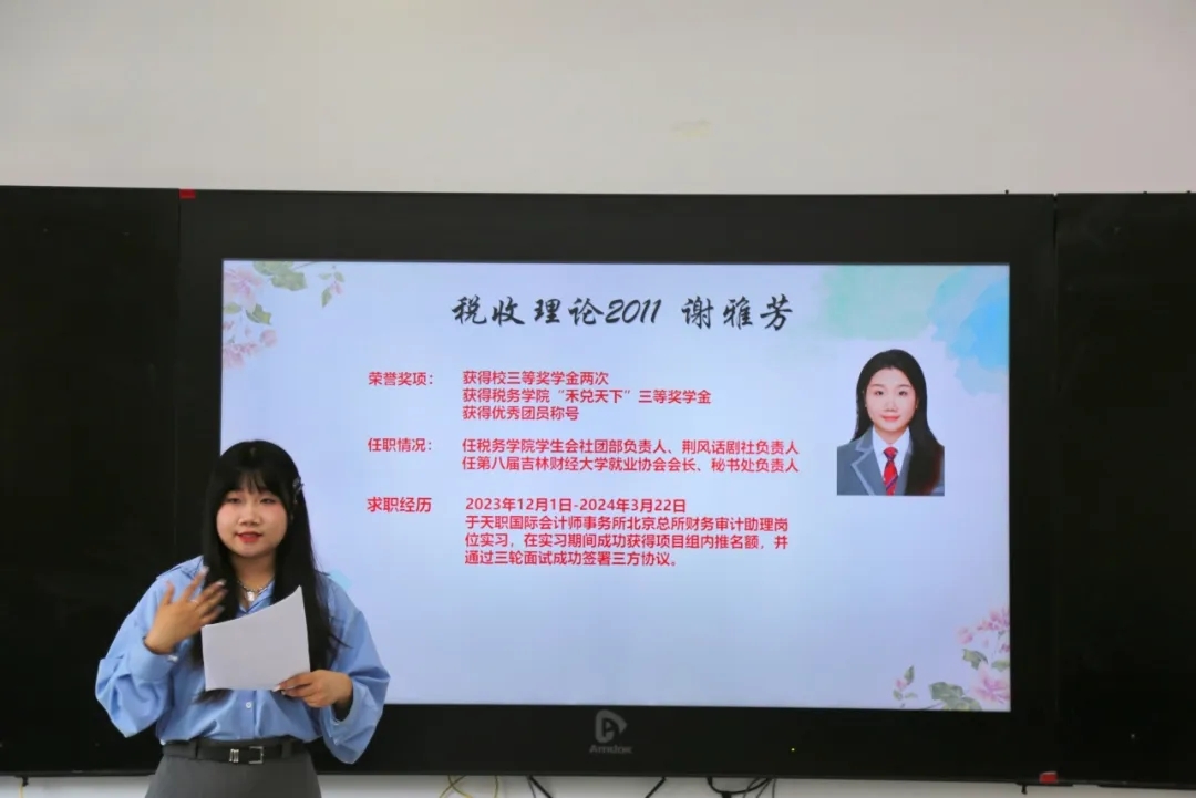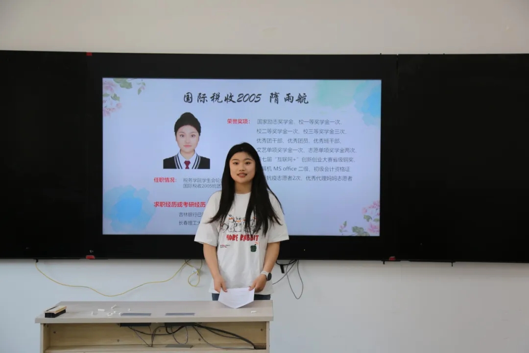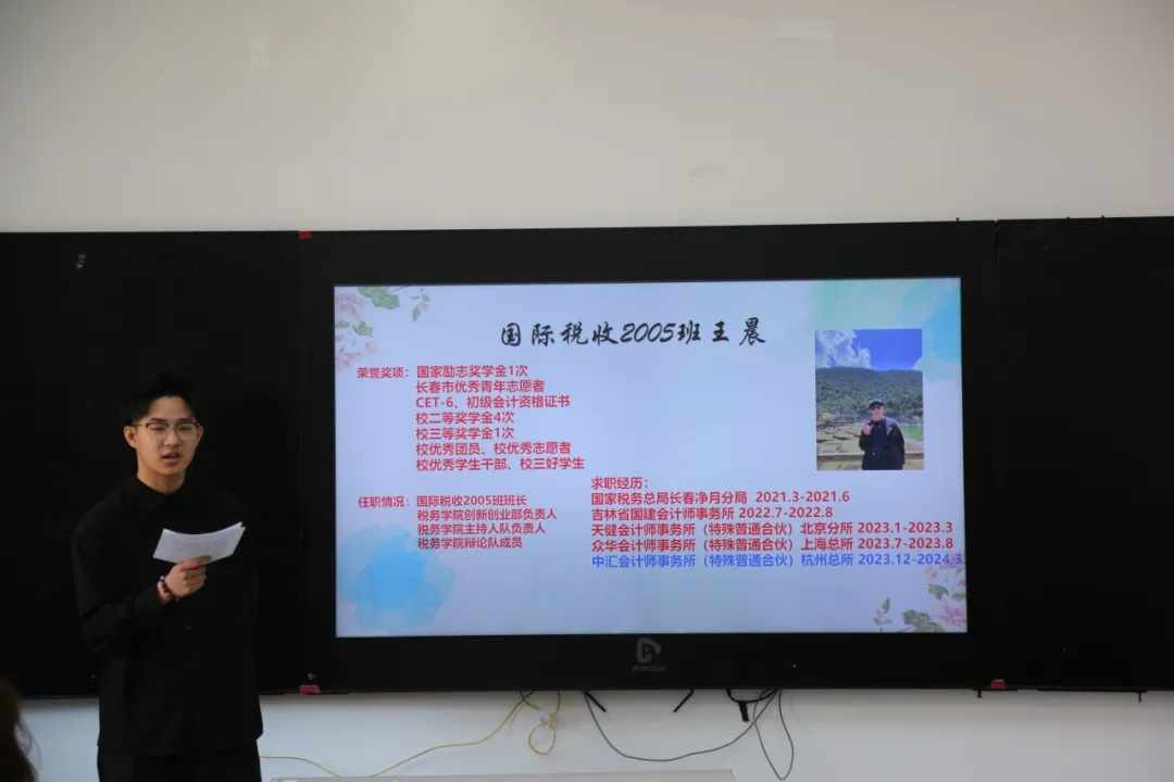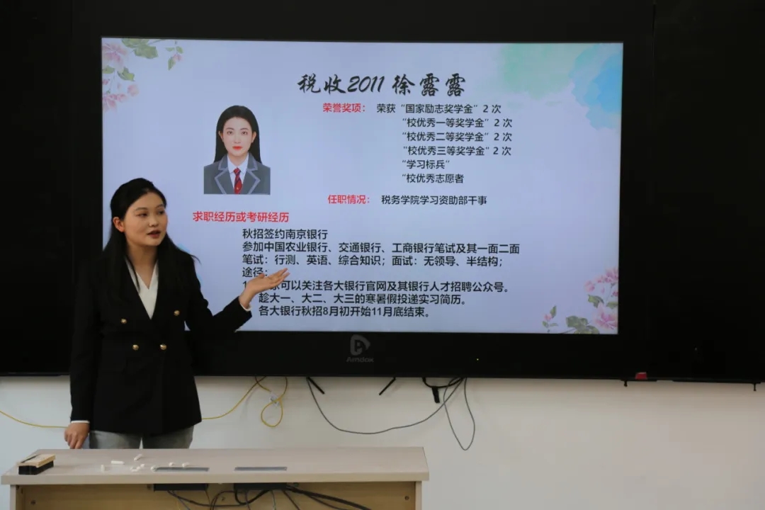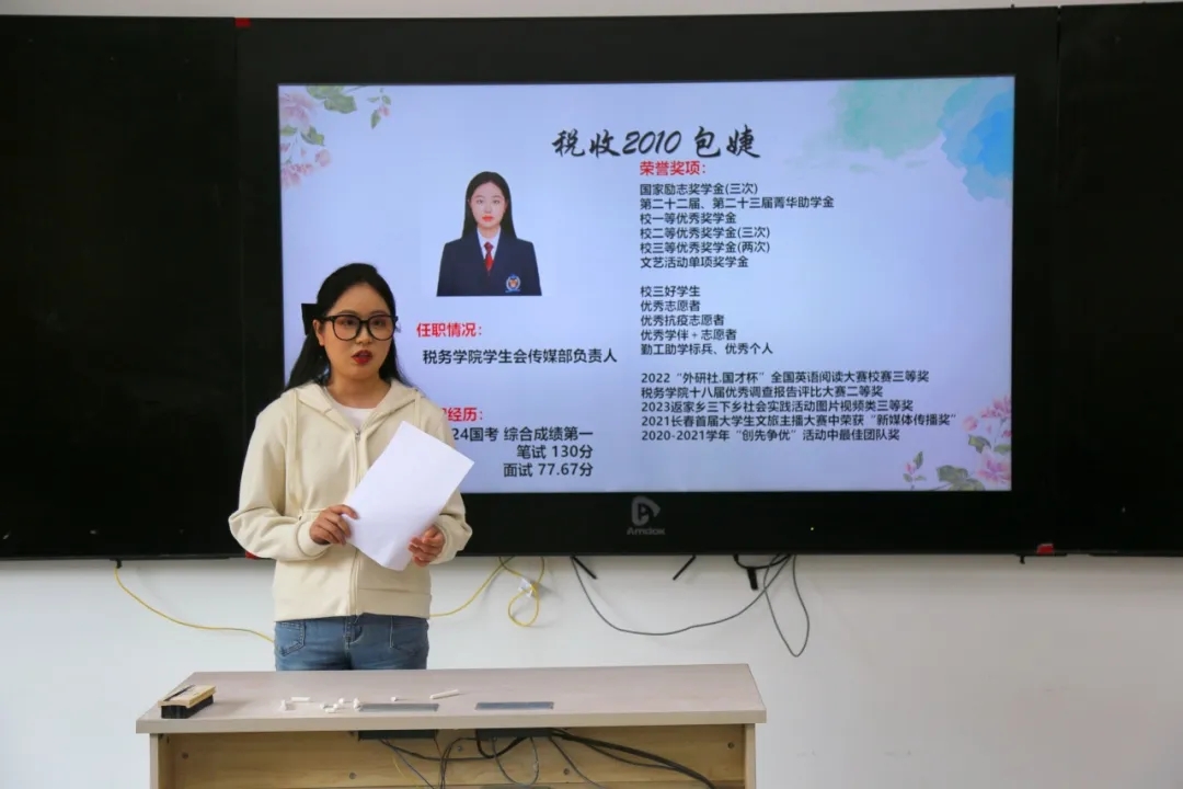 为加强学院学风建设,丰富学院学生考公、就业、考研学习经验,提高就业成功率和人才培养质量,4月22日,学院团委于第一教学楼1220教室举办第十六届成功学子学习经验交流会——考公就业专场。本次交流会邀请了五位优秀的2020级毕业生,分别是国际税收2005班王晨、国际税收2005班隋雨航、税收2011班徐露露、理论2011班谢雅芳、税收2010班包婕,他们向大家分享了各自的学习经验、学习方法、求职经历、面试技巧等。