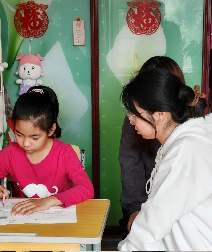 第一次去“代理妈妈”,孩子名叫潘佳琳,是一个非常听话的孩子,我们先是陪着她写作业,孩子写得很认真,也很认真地听我们讲解,然后我们又跟着孩子跳绳,做各种各样的活动,孩子也非常开心。通过这次“代理妈妈”活动,真的希望能给孩子带来更多的帮助和温暖,也希望孩子能够健康快乐,茁壮成长。