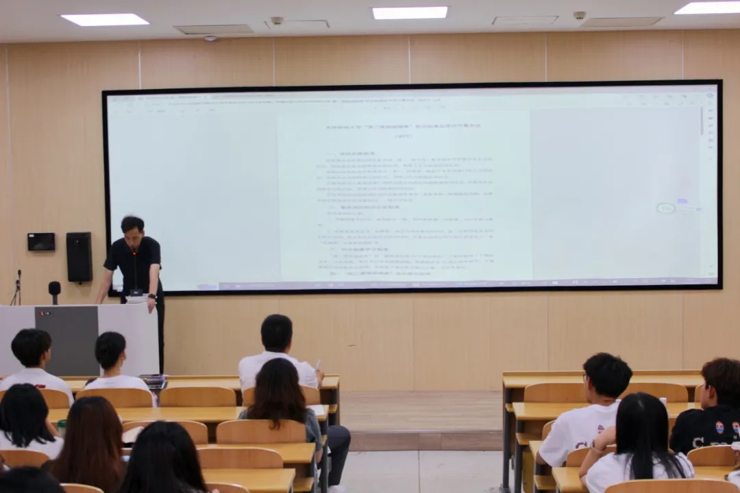 三、学习方面:李老师通过解读《304永利集团本科生创新创业学分认定与实施细则》以及《 304永利集团本科生“第二课堂成绩单”积分标准及学分计量方法(试行)》,向同学们讲述了创新创业学分以及第二课堂学分的获取方式和标准,让大家能合理规划,顺利修满学分。