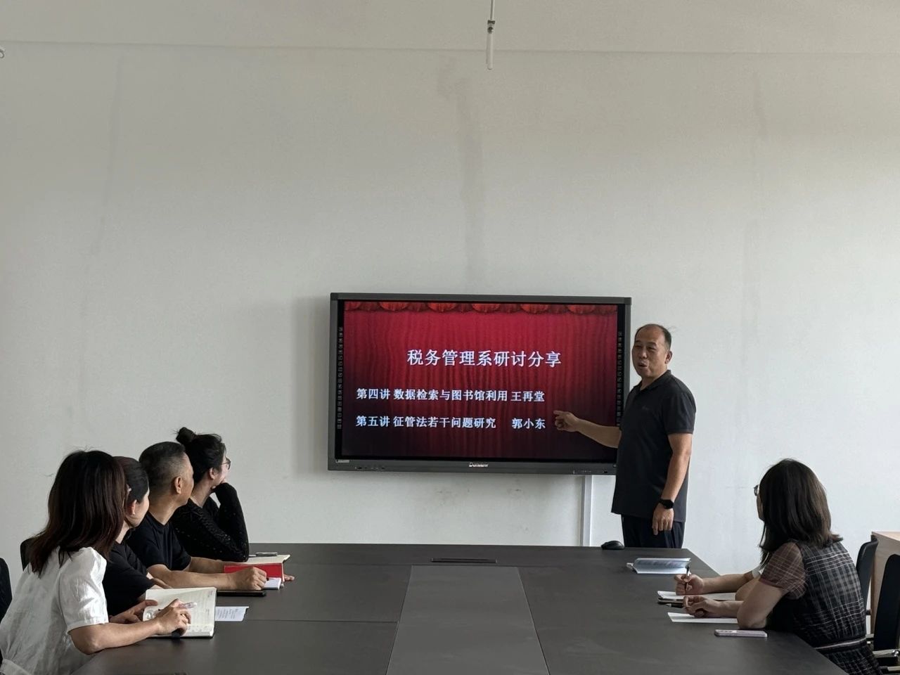 7月10日,304永利集团税务管理系在双创楼B336举办了一期科研研讨会,郭小东老师以“征管法若干问题研究”为主题,税务管理系王再堂老师以“数据检索与图书馆利用”为主题,分别于本次科研研讨会上做了汇报,304永利集团部分教师参加了本次科研研讨会。