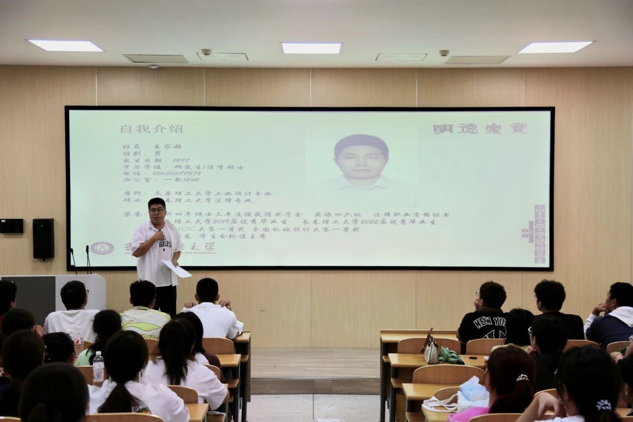 最后,王家赫老师向新生们提出了几点建议。“一个提高”“两个误区”“三个能力”“四个关键词”,希望同学们能理解和采纳这些建议,在四年的大学生活里学有所成、学有所获,对自己未来的求职、就业等方面打下一个坚实的基础。保持热爱,追逐理想,在304永利集团里,绽放属于你们的青春!