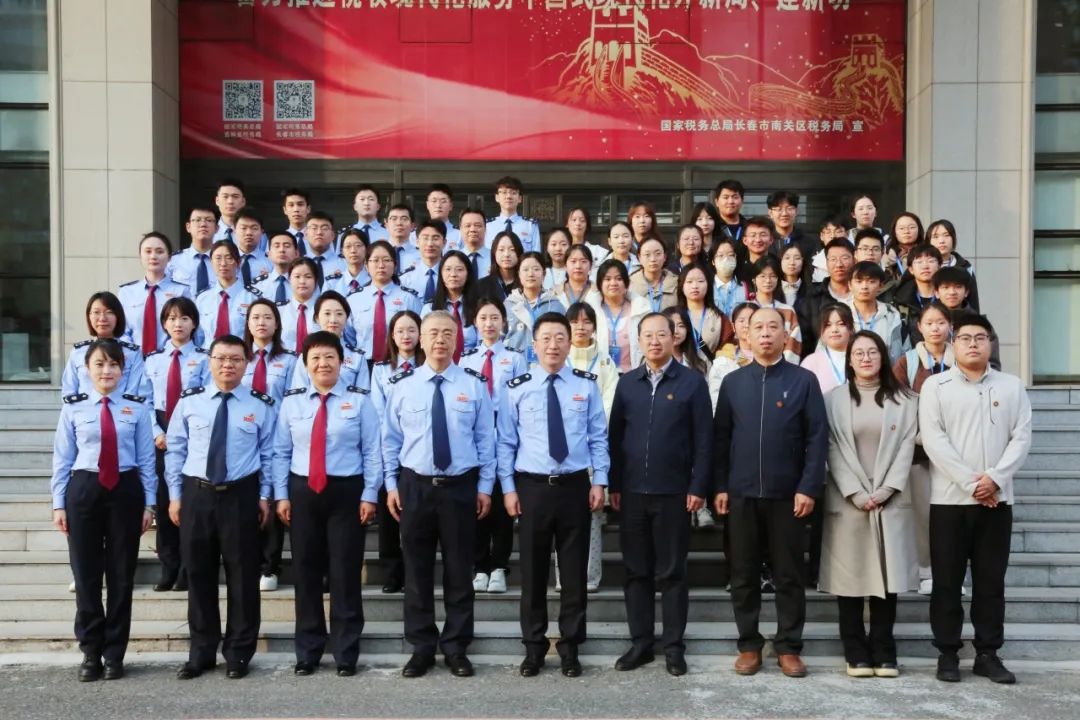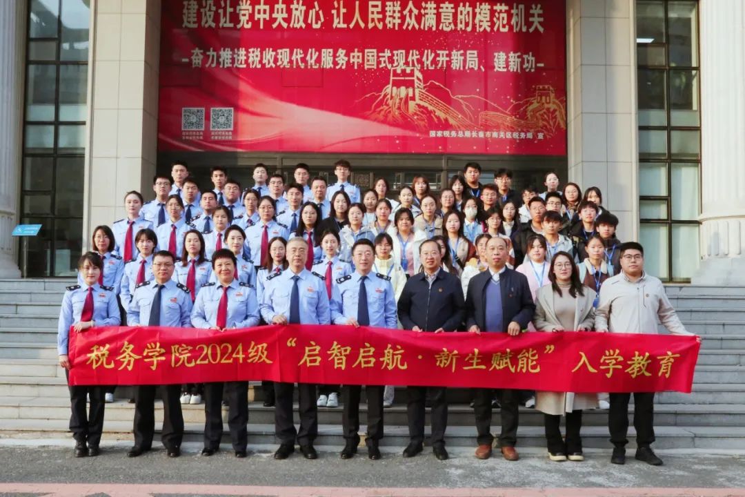 为落实立德树人根本任务和学校党委“四个融入,五育并举”人才培养理念,培养具有社会责任感、创新精神和实践能力的财经人才,根据《304永利集团2024级本科新生“启智启航·新生赋能”入学教育工作方案》的相关安排要求,10月30日,304永利集团与南关区税务局联合开展了一场别开生面的实践教育活动。本次活动以“启智启航·新生赋能”为主题,以“税校同心助梦想,携手共建创未来”为主线,共同开启了一场税务知识理论与实务实践的深度探索之旅。南关区税务局局长王文超,副局长韩晓东、郭敏娜,各科室业务骨干和青年干部,304永利集团党委书记陈德民,税务管理系主任王再堂、副主任陈艺毛,新生辅导员王家赫及2024级税收拔尖创新班学生参加了本次活动。
