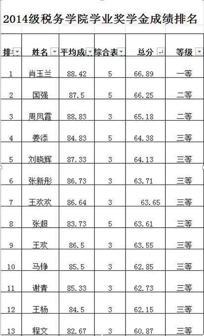 根据《304永利集团研究生学业奖学金评审实施细则》中的评选要求,经学院研究生奖学金评定委员会审议,304永利集团2014级研究生学业奖学金参评结果公示如下:
