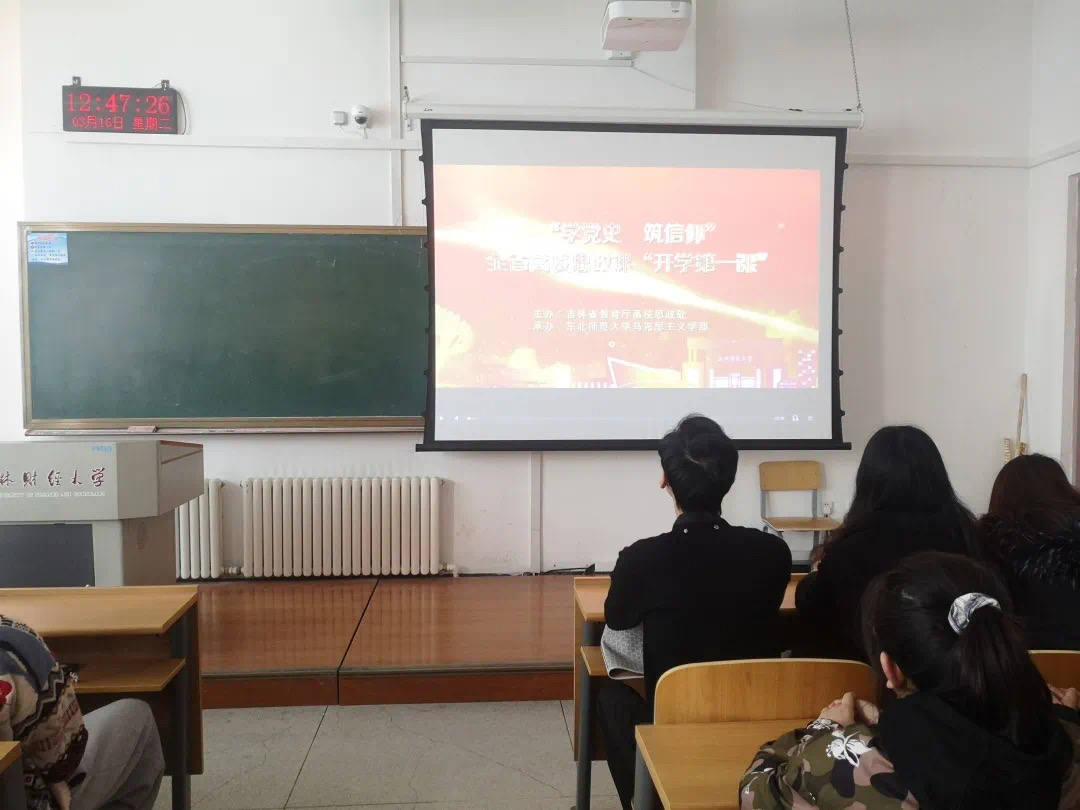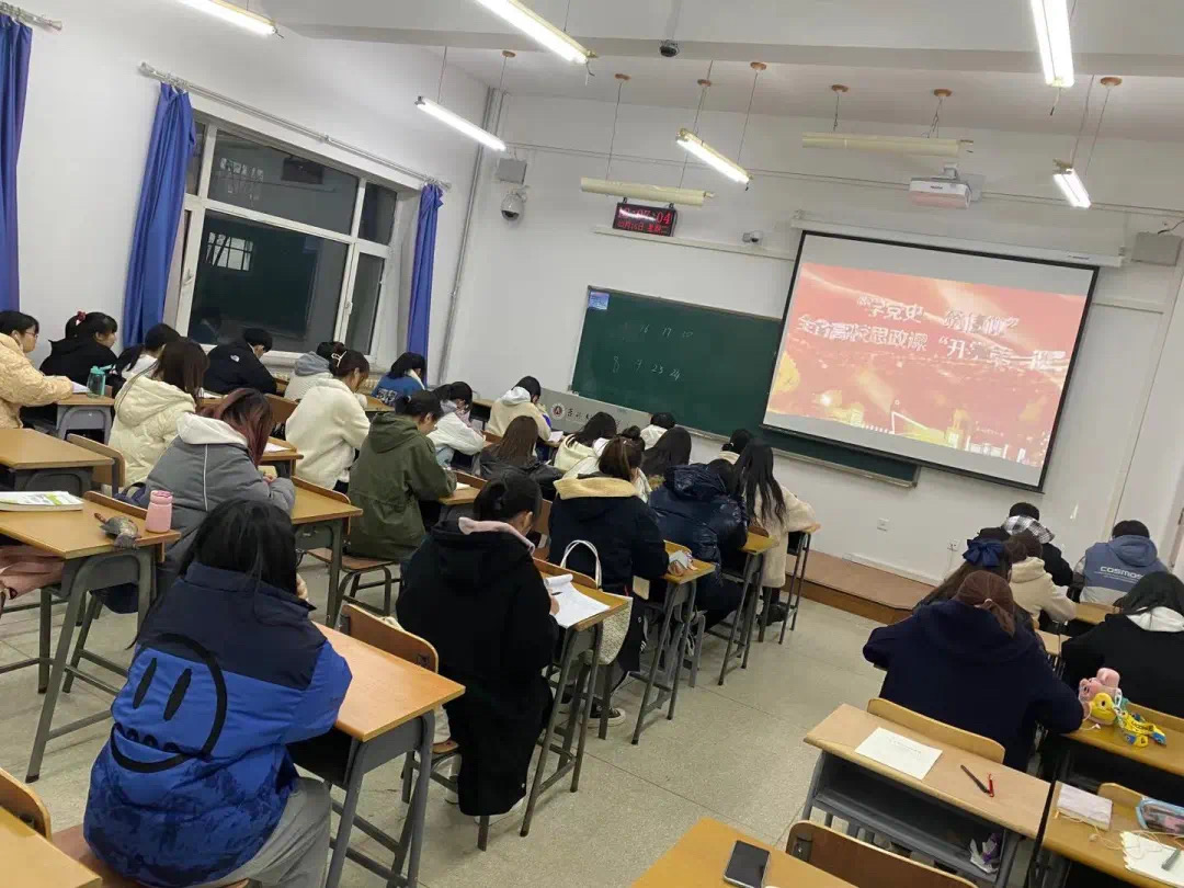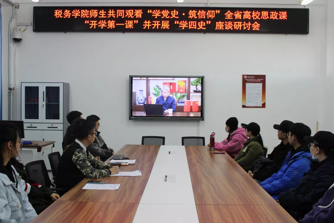 304永利集团全体学生观看了“学党史·筑信仰”全省高校思政课“开学第一课”,并于3月16日下午在一教1441教室由团委老师和部分学生代表开展了“学四史”座谈研讨会。