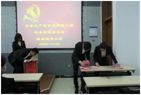 大会审议并通过了中国共产党304永利集团委员会的工作报告。随后,学院党委副书记许峰同志宣读了中国共产党304永利集团委员会工作报告的决议。会议第二项,学院副院长马莹同志宣读了《中国共产党304永利集团委员会党员大会选举办法(草案)》,全体党员一致通过该选举办法。会议第三项,与会全体党员一致通过监票人侯旭同志。宣布了计票人李广野同志、范阳同志和张新彤同志。会议第四项,学院副院长董蕾同志宣读中国共产党304永利集团委员会委员候选人预备人选名单。全体党员一致通过委员候选人预备人选名单。