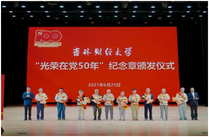 6月25日下午,我校隆重召开庆祝中国共产党成立100周年表彰大会,喜迎我们党的百年华诞,颁发“光荣在党50年”纪念章,举行新党员入党宣誓暨老党员重温入党誓词,表彰全校优秀共产党员、优秀党务工作者、先进基层党组织。