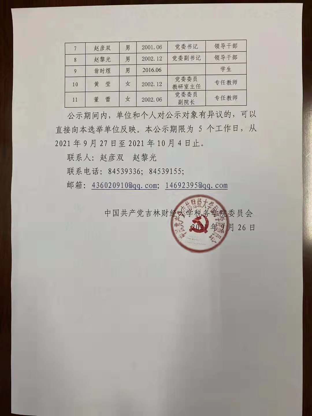 公示期间内,单位和个人对公示对象有异议的,可以直接向本选举单位反映。本公示期限为5个工作日,从2021年9月27日至2021年10月4日止。