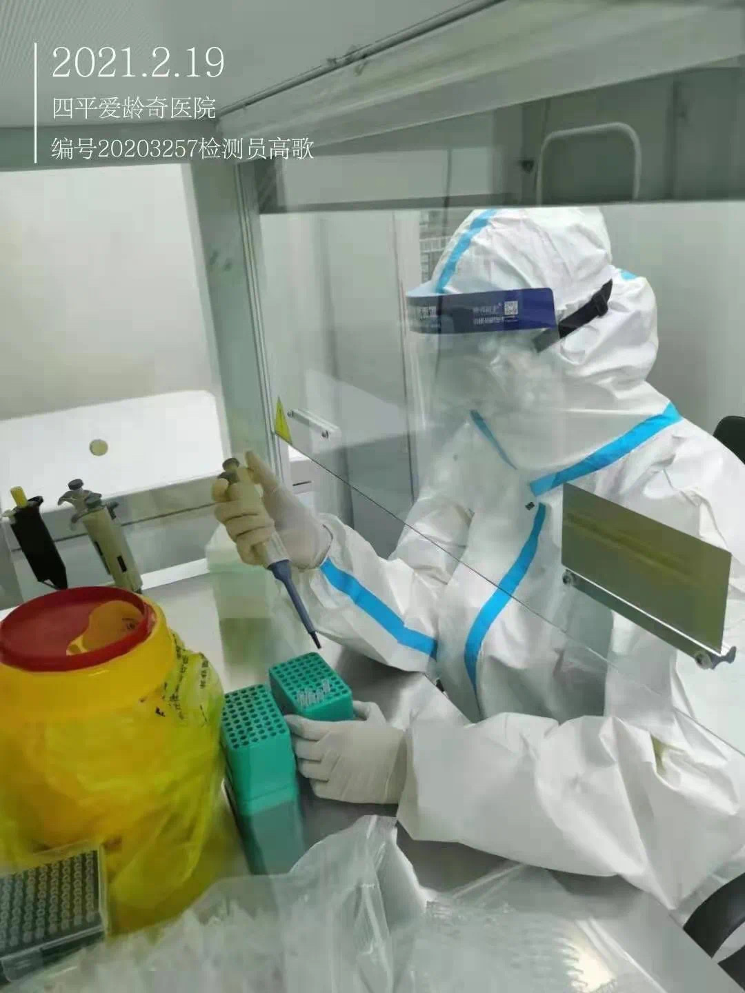 上岗以后,我才真正体会到了一线人员的伟大与不易。试剂配制不但必须分毫不差,全程必须保持精神高度集中。分析标本误差,操作必须严格按照规范执行。在PCR里本区人员不得擅自换区,否则很可能会污染采样以及浪费防护服……尽管样本数量庞大、任务艰巨,但却不是简单的机械性重复动作,每一份标本检测都需极高的精确度,这对于刚上任的我来说是生理和心理的双重考验。然而我知道每一位检验员都是这样走过来的,并且已经在这条路上坚定地走了那么久。对我来说,这就是成长。