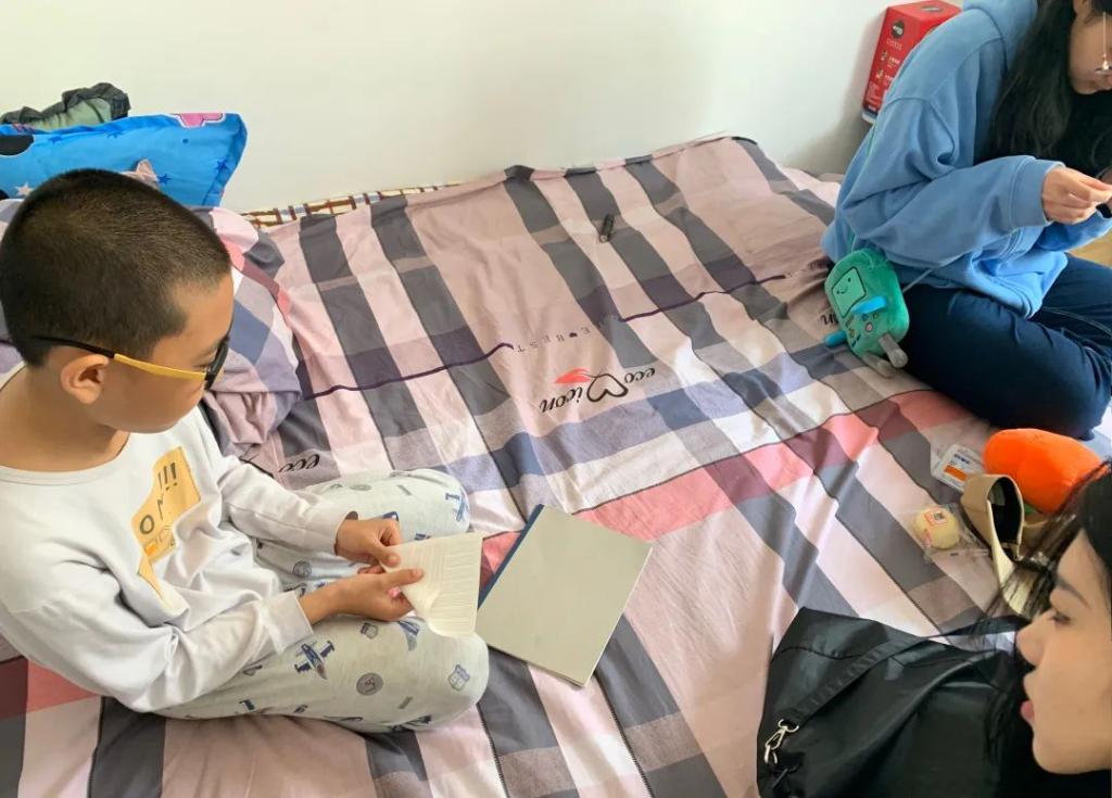 在这次“代理妈妈”的活动中,我们不断与谢同学进行沟通交流,让我们之间的关系逐渐熟悉。最开始的时候他面对我们有些陌生和紧张,当我问他问题的时候也是有着些许害羞,声音小小的应答,但我通过不断的和他交流跟他分享一些自己的故事,他也逐渐放下了自己的紧张感。开始与我们一同玩起游戏,在游戏之中他展现出放松快乐的一面。对于孩子而言,大学生这个年纪会更容易和孩子沟通并且以一个朋友的身份同他一起学习和玩,会更容易和他建立起很好的朋友关系。我在“代理妈妈”活动中丰富了生活,在实践中收获了与小孩的友谊,同时也让我在周末的时光里拥有了不错的回忆。
