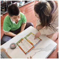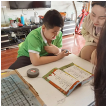我们陪他下了五子棋,教他读英语,他将书上的课文读得非常流利,他应该将课文读过很多很多遍了。我仿佛看到一个戴着助听器的小男孩,每天早晨捧着英语课本一遍又一遍地诵读。学习时间结束,弟弟给我们分享他的宝贝们:各式各样的车模,狙击枪玩具,小恐龙睡衣。我从未想到一个11岁的小男孩能如此精通车型。