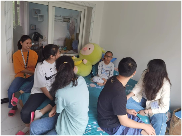 每个班级都有各自负责的孩子,每周去帮他们复习功课,在复习完功课以后,就陪孩子聊聊天,玩玩耍,帮提高成绩的同时,让他们放松身心,这不仅有利于他们的身心健康,更有利于他们的快乐成长。