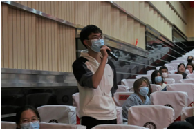 激烈的比赛开始了,第一环节“初窥门径”。本环节题目以选择题或填空题的形式出现,主持人念完题目后团队成员商量作答,有30秒时间确定最终答案,各队同时亮题板。比赛开始之际,三个学校选手根据问题开始讨论,在时间结束之前在题板上写出正确答案,每位选手沉着冷静,理性分析,展现出深厚的答题功底。