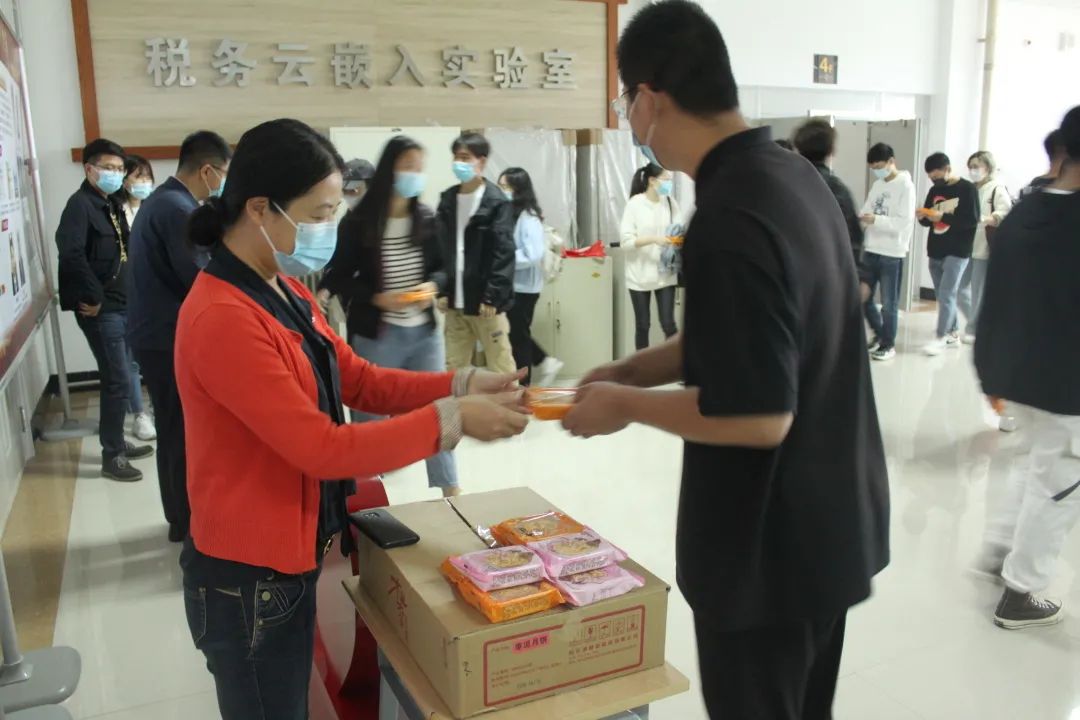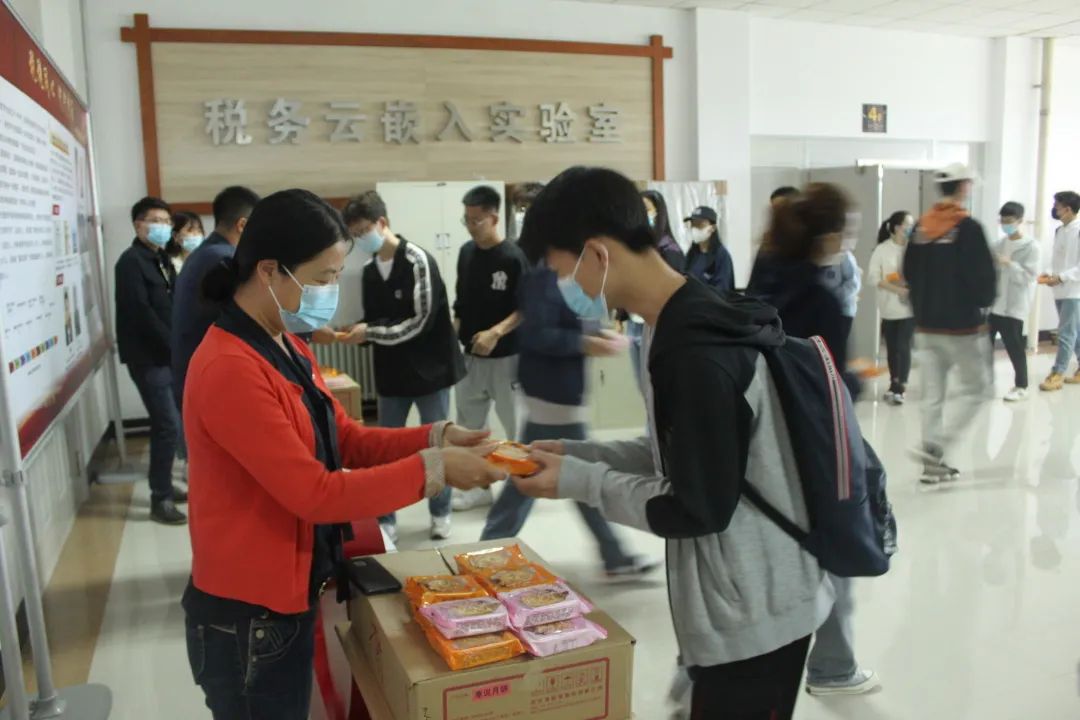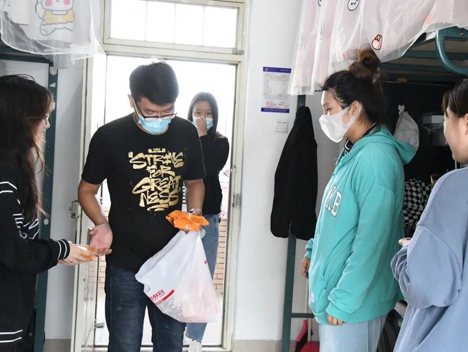 活动结束后,学院各团委老师走访学生寝室为同学们发放月饼,将节日祝福带到了每一位学生的心中。
