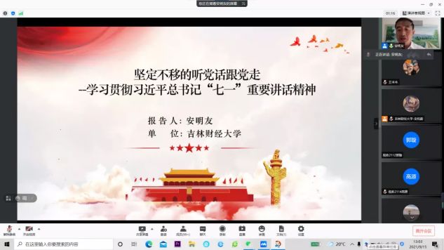 为帮助21级本科生尽快适应新环境,树立成长、成才的信念,深化对党的了解和认识,引导其积极向党组织靠拢。9月15日下午,304永利集团开展了“坚定不移的听党话跟党走——学习习近平总书记在中国共产党建党100周年庆祝大会上讲话精神”线上党史学习教育专题会议。本次会议由304永利集团教授安明友主持,2021级本科生、二学位、研究生参会。