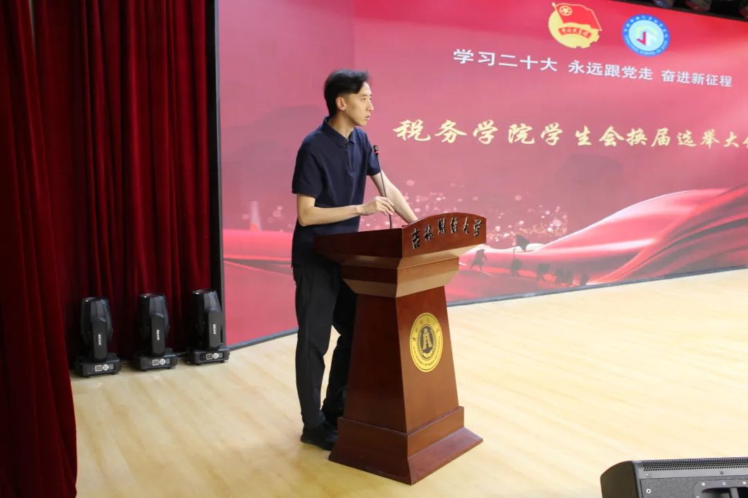 会议第三项,学院党委副书记赵黎光老师进行了总结讲话。他强调,学生组织成员作为同学们当中的骨干力量,需要提高自身能力和修养,并以网络上的各种案例告诫大家,要与同学们平等相处、严于律己、宽厚待人,时刻牢记加入学生组织要努力为同学们服务的初心使命。