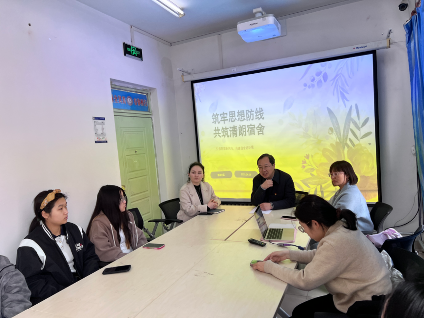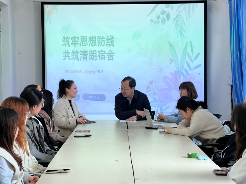 在座谈会上,陈德民书记强调,新时代青年学生要始终保持政治清醒,增强辨别力,自觉抵制错误思潮。他指出,宿舍是学生成长的“第二课堂”,应当树立正确价值观,共建风清气正的宿舍文化,科学规划时间,平衡学习与生活,营造积极向上的学习氛围。侯旭老师和努尔妮萨老师与同学们深入交流,勉励大家珍惜大学时光,加强朋辈互助,提升自我管理能力,实现全面发展。