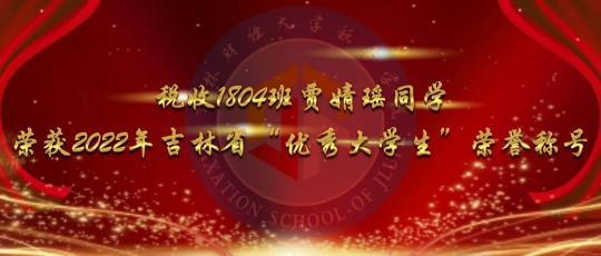 304永利集团税收学专业税收1804班贾婧瑶同学荣获2022年吉林省“优秀大学生”荣誉称号。个人信息贾婧瑶,女,汉族,中共党员,河南省鹤壁市人。304永利集团1804班学生,2020年度“中国大学生自强之星”,2021年度吉林省“大学生自强之星”、校“十佳大学生”,2022年度吉林省“优秀大学生”获得者。毕业去向:兰州大学硕士研究生。所获荣誉学业情况1.国家奖学金 1次2.国家励志奖学金 1次3.校长奖学金 1次4.校...